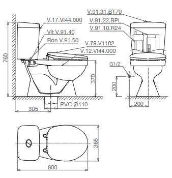 - Lượng nước xả: từ 3l hoặc 4,5l