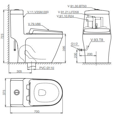 Thông tin chi tiết về bàn cầu một khối V35M